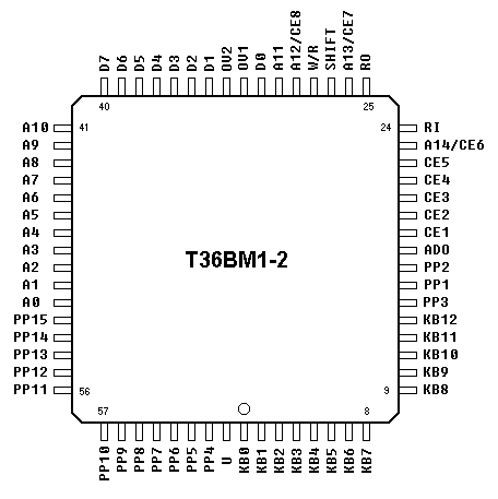 Later releases of the Т36ВМ1-2 microprocessor transmit 8 data bits instead of 5. The change occurred somewhere between the manufacturing date codes 9105 to 9109.