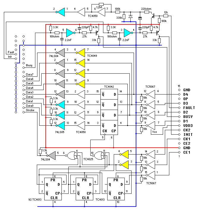 The printer communication protocol can be easily figured out from the circuit diagram of the FA-4 parallel port interface.