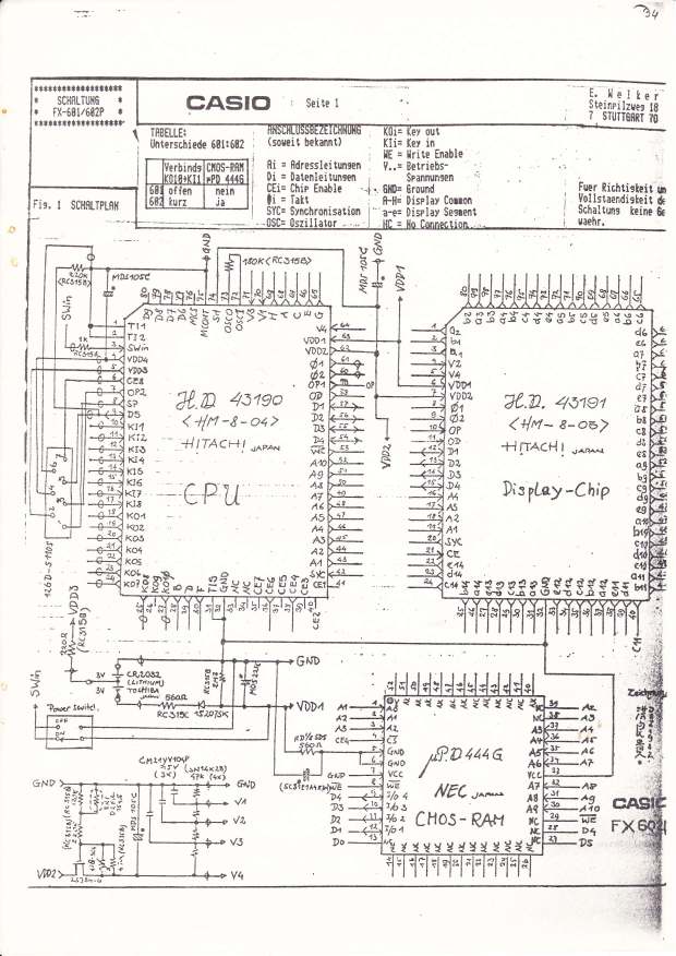 The design of this calculator is obviously based on the Casio FX-700P, but it appears to be an entirely different machine after all. It uses a 16-bit PDP-11 compatible microprocessor along with external RAM, program ROM and LCD controller. Such open architecture makes it an interesting object of hacking.